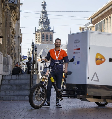 LEV stands for light electric vehicles. They’re completely emissions-free and much smaller than a regular delivery van – which is good for both the climate and the living environment. By using these vehicles, we help keep cities liveable. The LEVs are specially developed and produced for PostNL in the Netherlands. They are narrow, easy to manoeuvre and 100% electric, allowing most traffic to pass them easily.