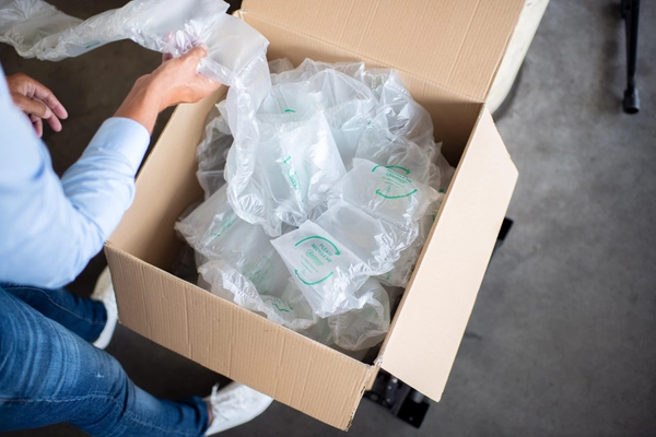 We willen zo min mogelijk verpakkingsmateriaal gebruiken. Daarom kijken we naar manieren om zo min mogelijk karton te verspillen. Samen met Bol hebben we onderzoek gedaan naar herbruikbare verpakkingen. Daarmee stuur je een pakket eenvoudig met dezelfde verpakking terug naar de webshop. Zo willen we de hoeveelheid verpakkingen terugdringen en online winkelen minder belastend maken voor het milieu.
