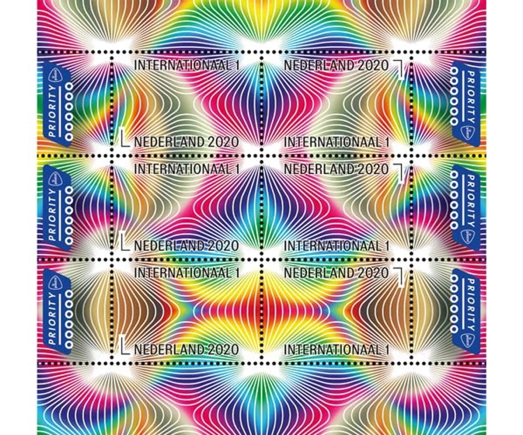 Den Haag, 14 september 2020. PostNL brengt vandaag veelkleurige postzegels uit met caleidoscopische patronen. In het vrolijke en speelse postzegelvel vol optische illusies heeft grafisch ontwerper Hansje van Halem, winnaar van de Dutch Design Award for Communication in 2018, alle kleuren uit de kleurendoos toegepast.
