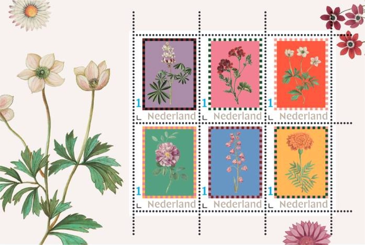 Den Haag, 15 november 2022. PostNL introduceert vandaag een nieuw product met wenskaarten en postzegels die elkaars evenbeeld zijn. De 6 kaarten en 6 persoonlijke postzegels zijn gesierd met bloemen die afkomstig zijn van tekeningen en aquarellen uit het Rijksmuseum Amsterdam.