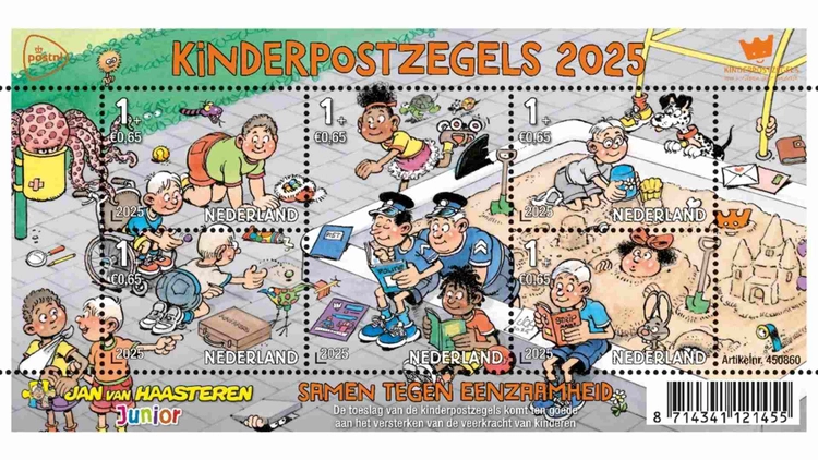 24-9-2025 10:00Den Haag, 24 september 2025 – De bekende striptekenaar Jan van Haasteren heeft de kinderpostzegels 2025 ontworpen. Voor het eerst in jaren ontwierp Van Haasteren weer zelf, wat dit postzegelvel extra bijzonder maakt. Dit jaar staat de kinderpostzegelactie in het teken van ‘Samen tegen eenzaamheid’. 24-9-2025 10:00Den Haag, 24 september 2025 – De bekende striptekenaar Jan van Haasteren heeft de kinderpostzegels 2025 ontworpen. Voor het eerst in jaren ontwierp Van Haasteren weer zelf, wat dit postzegelvel extra bijzonder maakt. Dit jaar staat de kinderpostzegelactie in het teken van ‘Samen tegen eenzaamheid’.