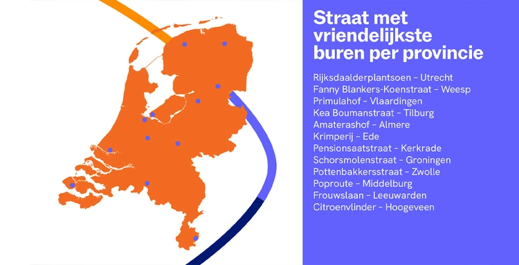 26-9-2025 10:00Morgen, zaterdag 27 september, is het Nationale Burendag. Uit data van PostNL blijkt dat de vriendelijkste buren van Nederland wonen aan het Rijksdaalderplantsoen in Utrecht. In deze straat werden in het afgelopen jaar zo’n 400 pakketten voor buren aangenomen, gemiddeld bijna 10 per adres. Nergens anders in Nederland is dat aantal zo hoog. Daarmee wonen de vriendelijkste buren in Utrecht. De Fanny Blankers-Koenstraat in Weesp en Primulahof in Vlaardingen maken het erepodium met een tweede en derde plek compleet. In België staat de Locomotiefstraat in Mechelen op de eerste plaats. 26-9-2025 10:00Morgen, zaterdag 27 september, is het Nationale Burendag. Uit data van PostNL blijkt dat de vriendelijkste buren van Nederland wonen aan het Rijksdaalderplantsoen in Utrecht. In deze straat werden in het afgelopen jaar zo’n 400 pakketten voor buren aangenomen, gemiddeld bijna 10 per adres. Nergens anders in Nederland is dat aantal zo hoog. Daarmee wonen de vriendelijkste buren in Utrecht. De Fanny Blankers-Koenstraat in Weesp en Primulahof in Vlaardingen maken het erepodium met een tweede en derde plek compleet. In België staat de Locomotiefstraat in Mechelen op de eerste plaats.