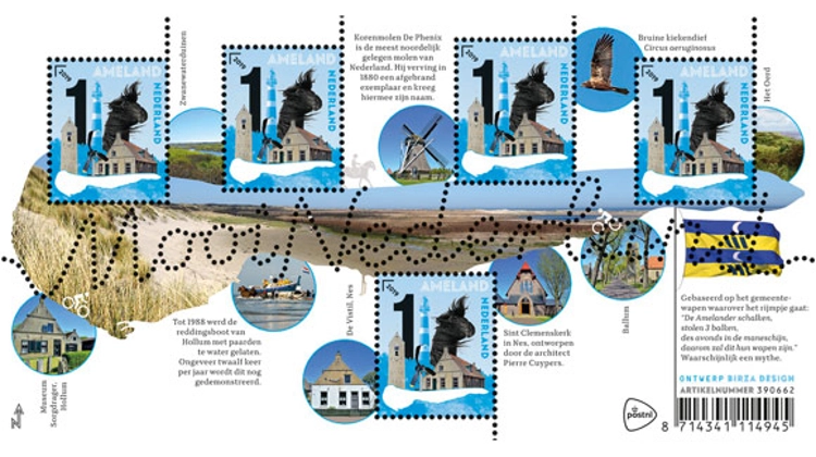 Ameland krijgt zijn eigen postzegel, met alle aandacht voor natuur en architectuur