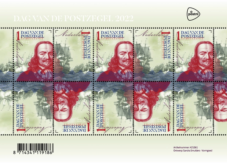 Den Haag, 17 oktober 2022. Voor de uitgifte van de Dag van de Postzegel nam PostNL dit jaar de De Ruyter-postzegels uit 1907 als onderwerp. Deze postzegels verschenen toentertijd ter ere van de 300e geboortedag van Michiel Adriaanszoon de Ruyter, de beroemdste admiraal uit de Nederlandse zeegeschiedenis.