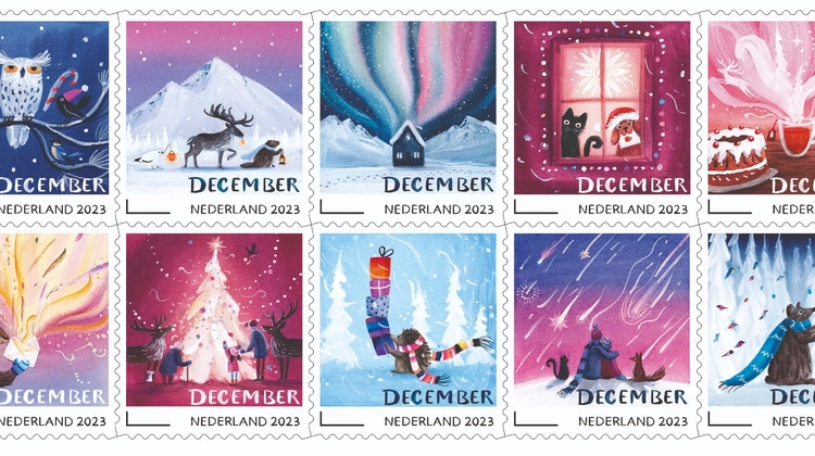 Den Haag, 13 november 2023 - PostNL heeft vandaag de decemberzegels van dit jaar onthuld. Deze postzegels met speciaal tarief staan in 2023 in het teken van het hoge noorden. De illustraties zijn gemaakt door de Nederlandse illustrator Linde Faas die in Tromsø in Noorwegen woont en werkt.