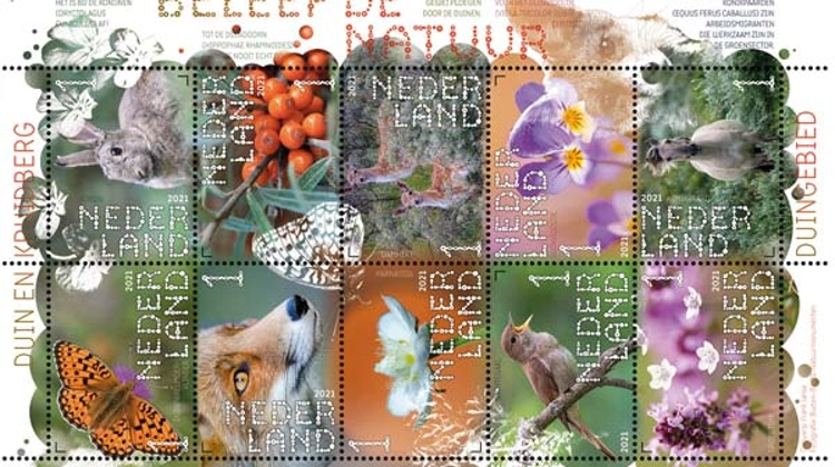 Den Haag, 14 juni 2021. Op de nieuwste postzegels van PostNL is een welverdiend plekje ingeruimd voor de flora en fauna van Duin en Kruidberg. Dit ongerepte duingebied in Noord-Holland maakt deel uit van het Nationaal Park Zuid-Kennemerland, dat maar liefst 3800 hectare groot is.