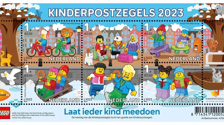 Den Haag, 13 oktober 2023 - Op de nieuwe kinderpostzegels verbeelden minifiguren van de LEGO Groep het thema ‘laat ieder kind meedoen’ van de kinderpostzegelactie van 2023. Vanaf vandaag bezorgt PostNL de kinderpostzegels, die ook dit jaar weer door ruim 130.000 schoolkinderen aan de deur zijn verkocht.