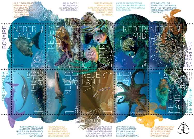 In de serie Beleef de natuur van PostNL gaat de komende jaren de aandacht uit naar de flora en fauna van Caribisch Nederland. De uitgiften van 2024 staan in het teken van de natuur op Bonaire. Terwijl de eerste postzegels waren gewijd aan de vogels en vlinders van het eiland, gaat deze derde uitgifte onder water.