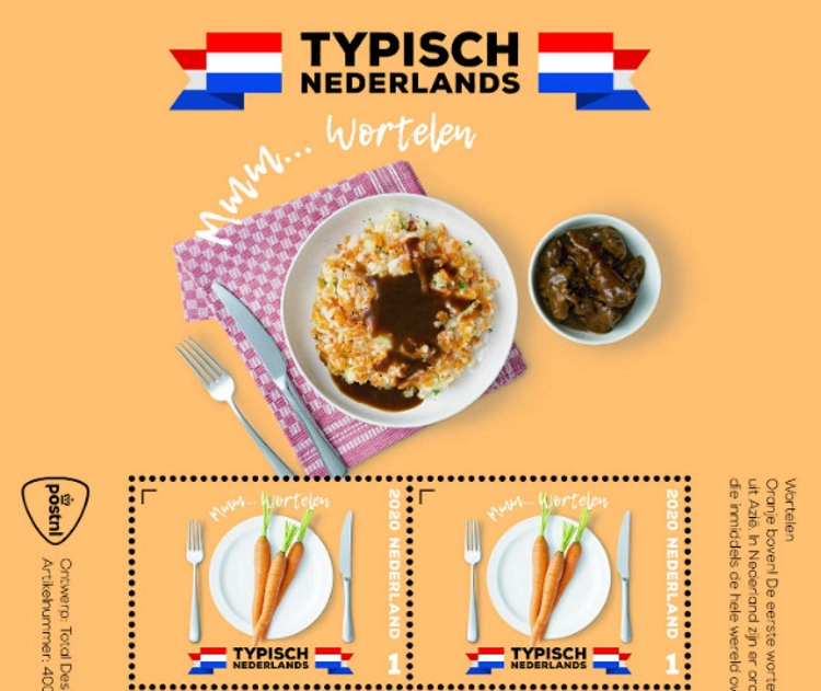 Den Haag, 25 februari 2020 – Oranje wortelen horen echt bij ons land. Daarom staan ze afgebeeld op het nieuwste postzegelvel uit de serie Typisch Nederlands die PostNL vandaag uitbrengt.