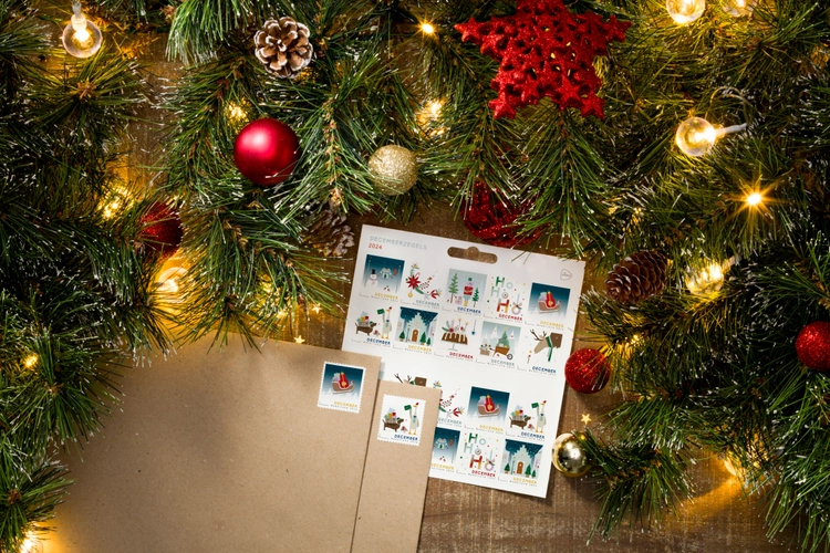 Wie twee vellen decemberzegels koopt, ontvangt een speciaal kerstornament van Vondels, ontworpen in de vorm van de cadeaus zoals te zien is op de arrenslee-postzegel. PostNL biedt hiermee een extra feestelijk gebaar aan iedereen die kerst- en nieuwjaarskaarten wil versturen, met een voordelig tarief van € 1,06 per decemberzegel, geldig van 18 november 2024 tot en met 4 januari 2025.