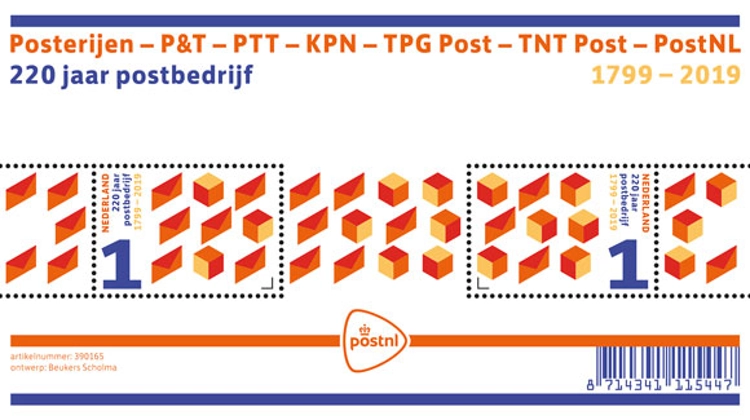 Den Haag, 24 januari 2019. In januari 1799, 220 jaar geleden, werden in ons land alle lokale posterijen genationaliseerd. PostNL, de erfgenaam van deze postbedrijven, besteedt aan dit bijzondere jubileum aandacht met de uitgifte van het postzegelvel 220 jaar postbedrijf.