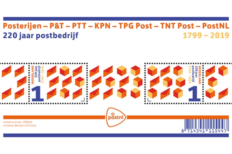 Den Haag, 24 januari 2019. In januari 1799, 220 jaar geleden, werden in ons land alle lokale posterijen genationaliseerd. PostNL, de erfgenaam van deze postbedrijven, besteedt aan dit bijzondere jubileum aandacht met de uitgifte van het postzegelvel 220 jaar postbedrijf.