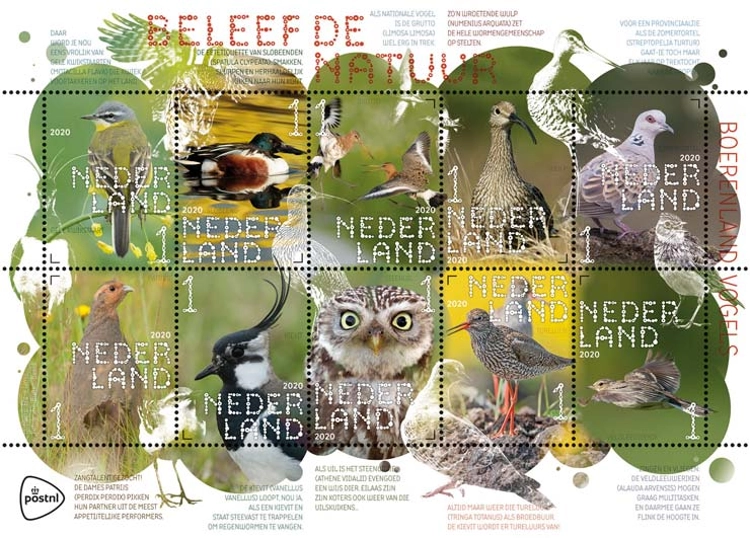 Den Haag, 21 februari 2020 – PostNL brengt vandaag in de serie ‘Beleef de natuur’ een nieuw postzegelvel uit, met op 10 postzegels 10 verschillende vogels van het boerenland. Daartoe behoort ook de grutto, die enkele jaren geleden door het Nederlandse publiek tot Nationale Vogel werd gekozen.