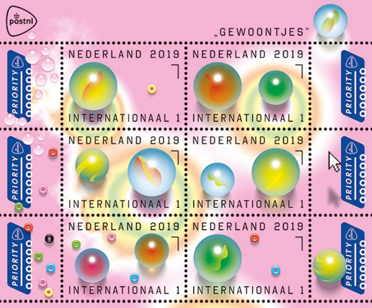 Den Haag, 18 oktober 2019 - Op het vandaag verschenen postzegelvel Gewoontjes van PostNL spelen knikkers de hoofdrol. Geen bonken, kalebassen of stuiters, maar gewoontjes. Deze oude naam gebruiken kinderen ook nu nog steeds voor de kleinere knikkers waarmee ze het knikkerspel spelen.