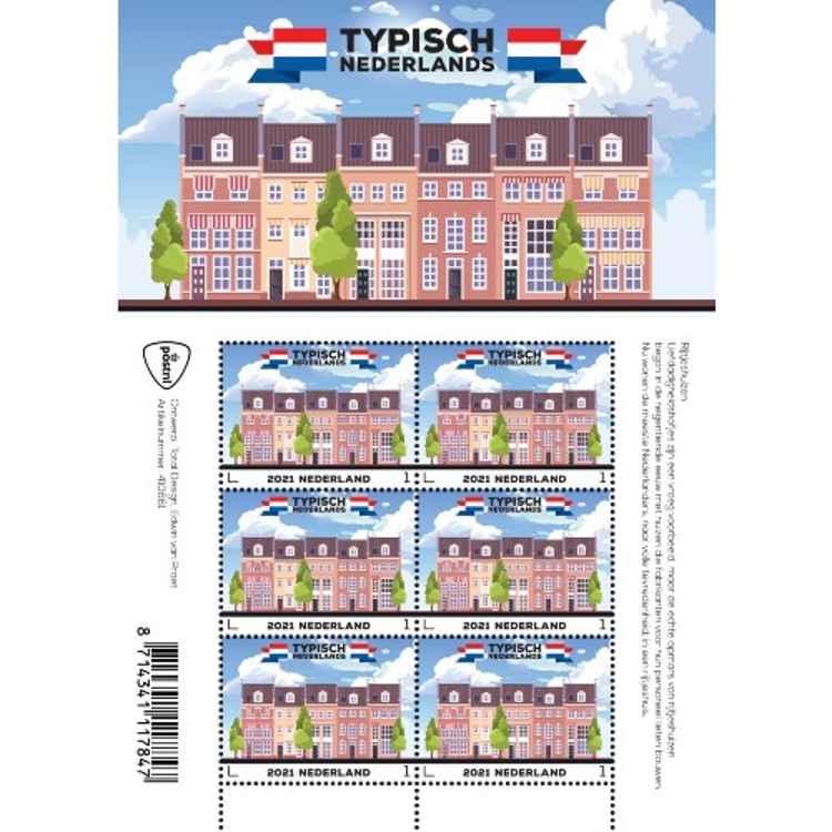 Het?postzegelvel?Typisch Nederlands – rijtjeshuizen?telt?6?gelijke?postzegels met de?waardeaanduiding?Nederland 1, bedoeld voor post tot?en met?20 gram met een bestemming binnen?Nederland.?De postzegels zijn vanaf?14 juni 2021?verkrijgbaar?bij de Bruna-winkels en via www.postnl.nl/bijzondere-postzegels. De postzegels zijn ook telefonisch te bestellen bij de klantenservice van Collect Club op telefoonnummer 088 - 868 99 00. De geldigheidstermijn is onbepaald.?