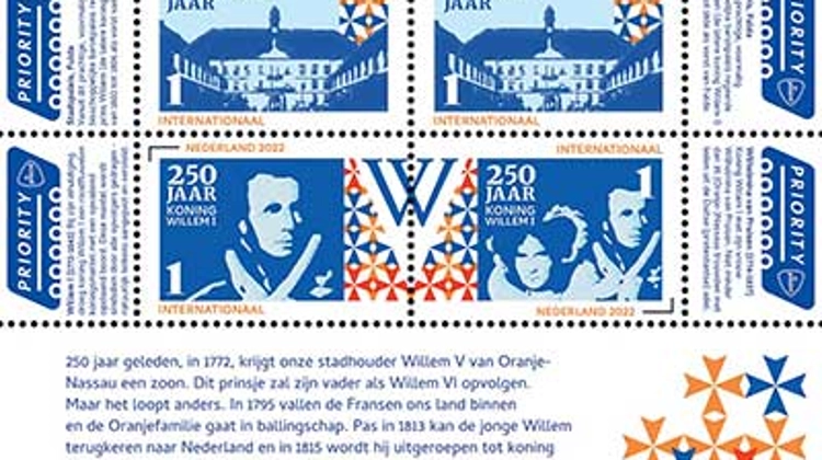 Den Haag, 20 juni 2022. Vandaag geeft PostNL een nieuw postzegelvel uit, ter gelegenheid van het 250e geboortejaar van de eerste koning uit het huis Oranje-Nassau: Willem I (1772-1843).