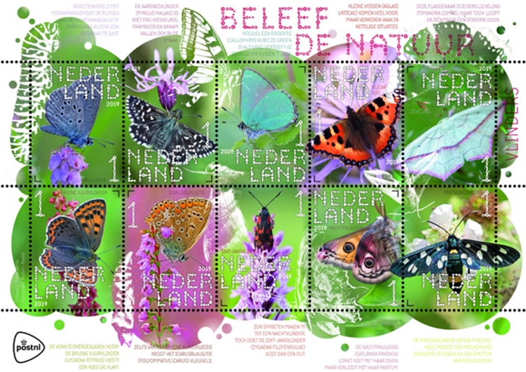 Het postzegelvel Beleef de natuur - vlinders telt 10 verschillende postzegels met de waardeaanduiding Nederland 1, bedoeld voor post tot en met 20 gram met een bestemming binnen Nederland. De postzegels zijn vanaf 11 juni 2019 verkrijgbaar bij alle verkooppunten van PostNL, het postkantoor in de Bruna-winkels en via de website. De postzegels zijn ook telefonisch te bestellen bij de klantenservice van Collect Club op telefoonnummer 088 - 868 99 00. De geldigheidstermijn is onbepaald.