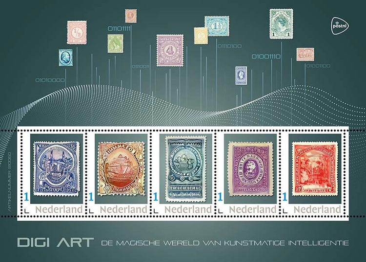 Den Haag - PostNL heeft een bijzondere primeur. Vandaag geeft PostNL als eerste postbedrijf ter wereld postzegels uit waarvan het ontwerp is gemaakt door een computeralgoritme (AI). De uitgifte Digi Art werd door de computer ontworpen op basis van een collectie met 1.500 postzegels uit de periode 1852-1920.