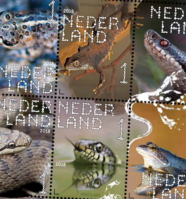Op het postzegelvel uit de populaire serie Beleef de natuur – reptielen en amfibieën (2018) staan tien reptielen en amfibieën die je in ons kikkerlandje kunt tegenkomen. Maar we maken het je niet te makkelijk. Het beest staat niet afgebeeld op dit vel, maar het had er in een ver verleden wel mee te maken...
