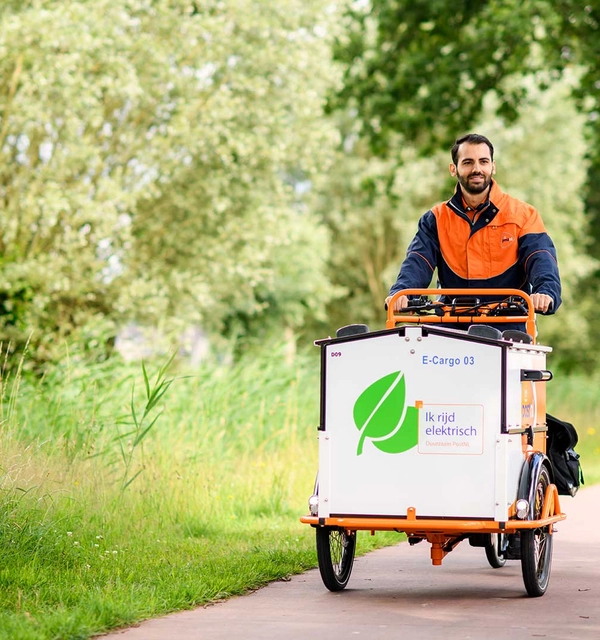 We willen onze impact op het klimaat zo klein mogelijk maken. Daarom rijden we steeds meer elektrisch, vervangen we fossiele brandstoffen door hernieuwbare alternatieven en bezorgen we steeds meer op de fiets. Benieuwd hoe we jou daarmee kunnen helpen?